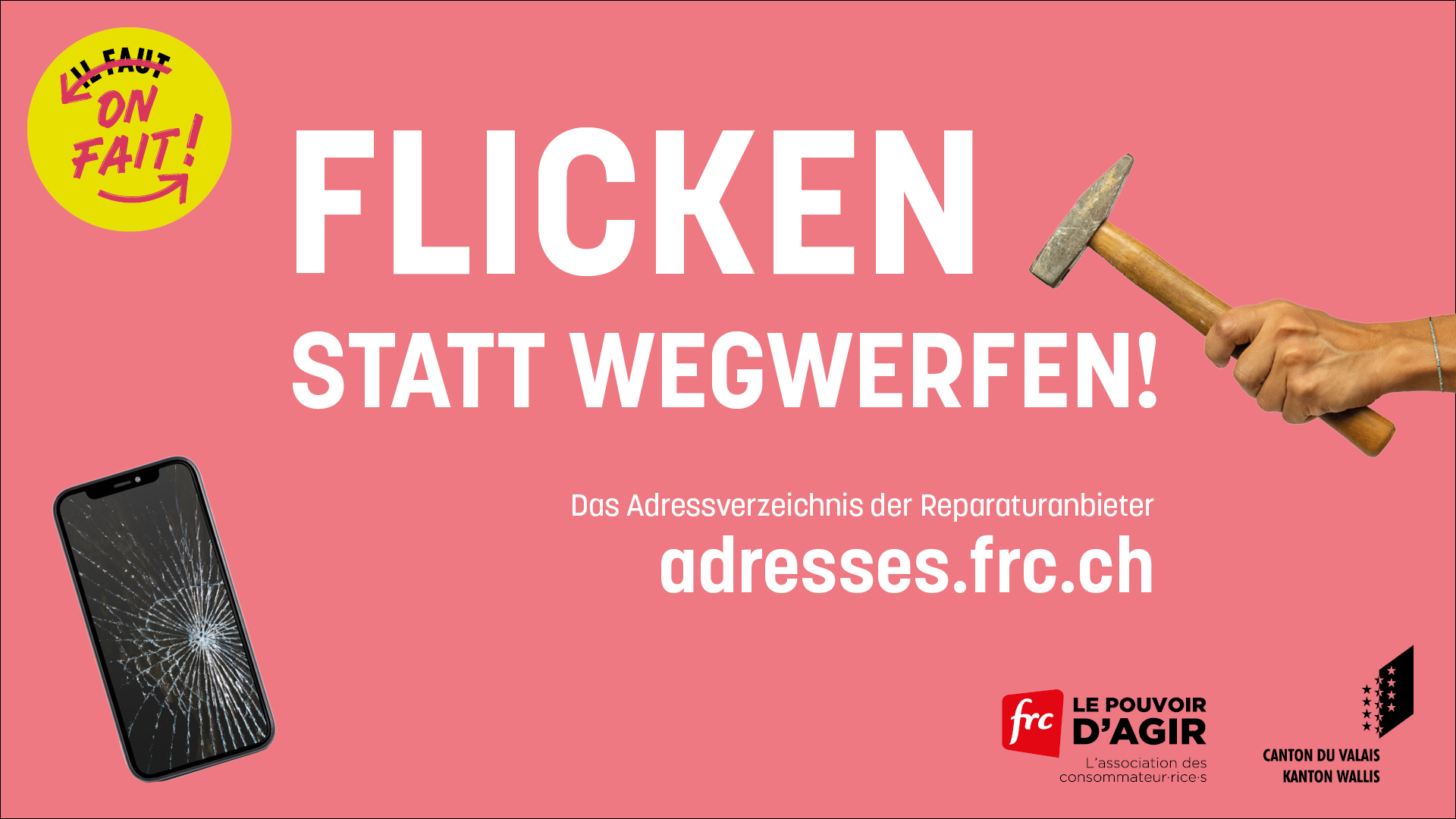 Auf der Plattform der Fédération romande des consommateurs (FRC) finden Sie gute Adressen für Wiederverwendung, Reparatur und Grosshandel. Die Adressen im Wallis wurden mit Unterstützung der Delegierten für Nachhaltigkeit gesammelt.