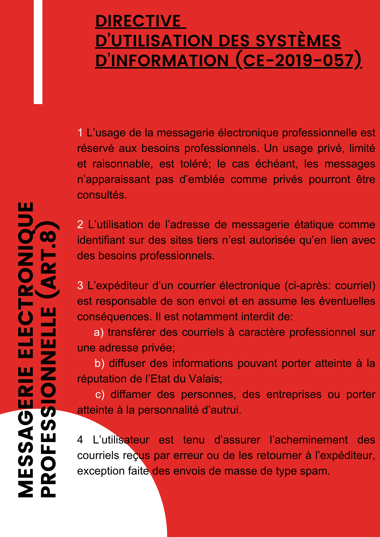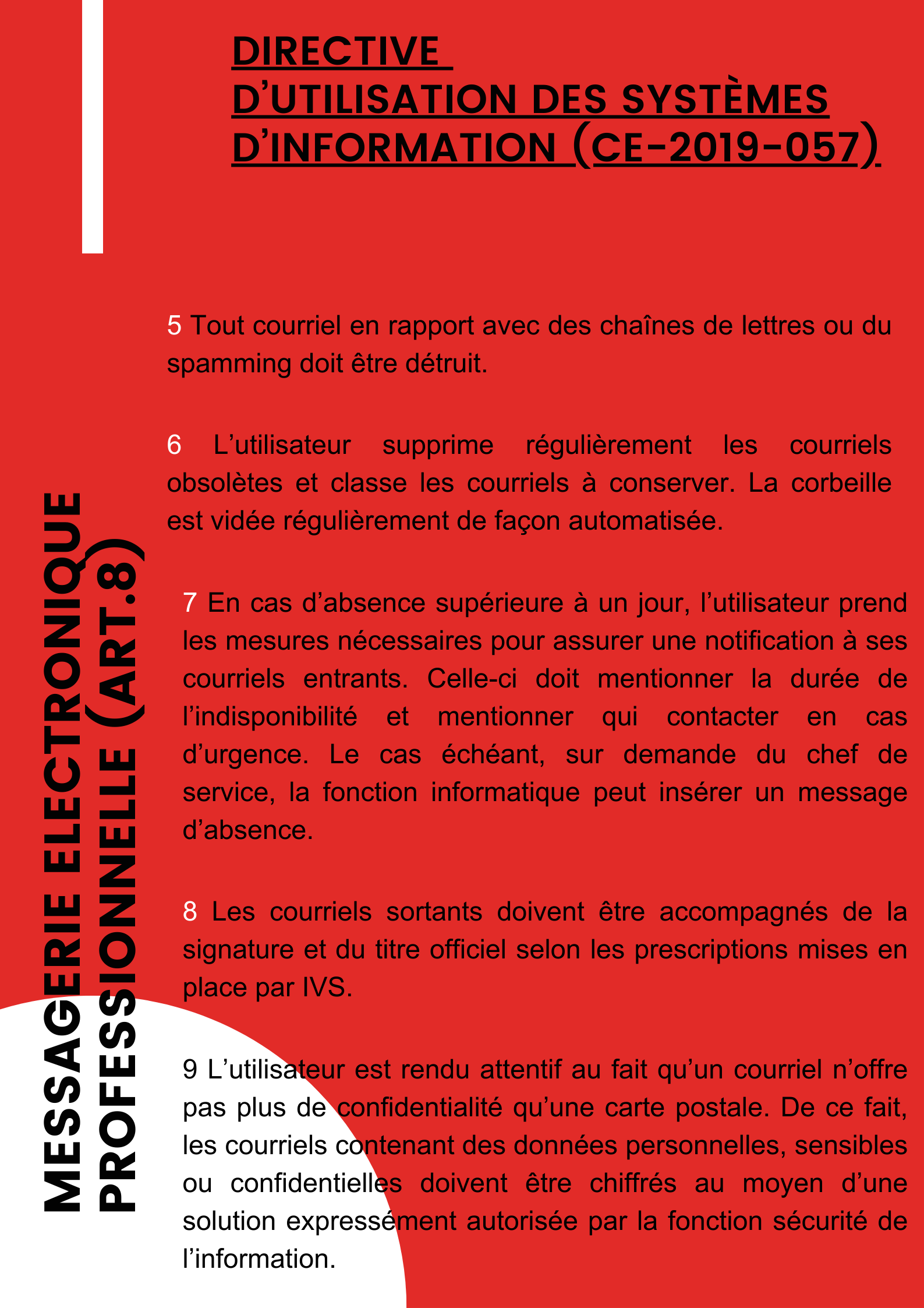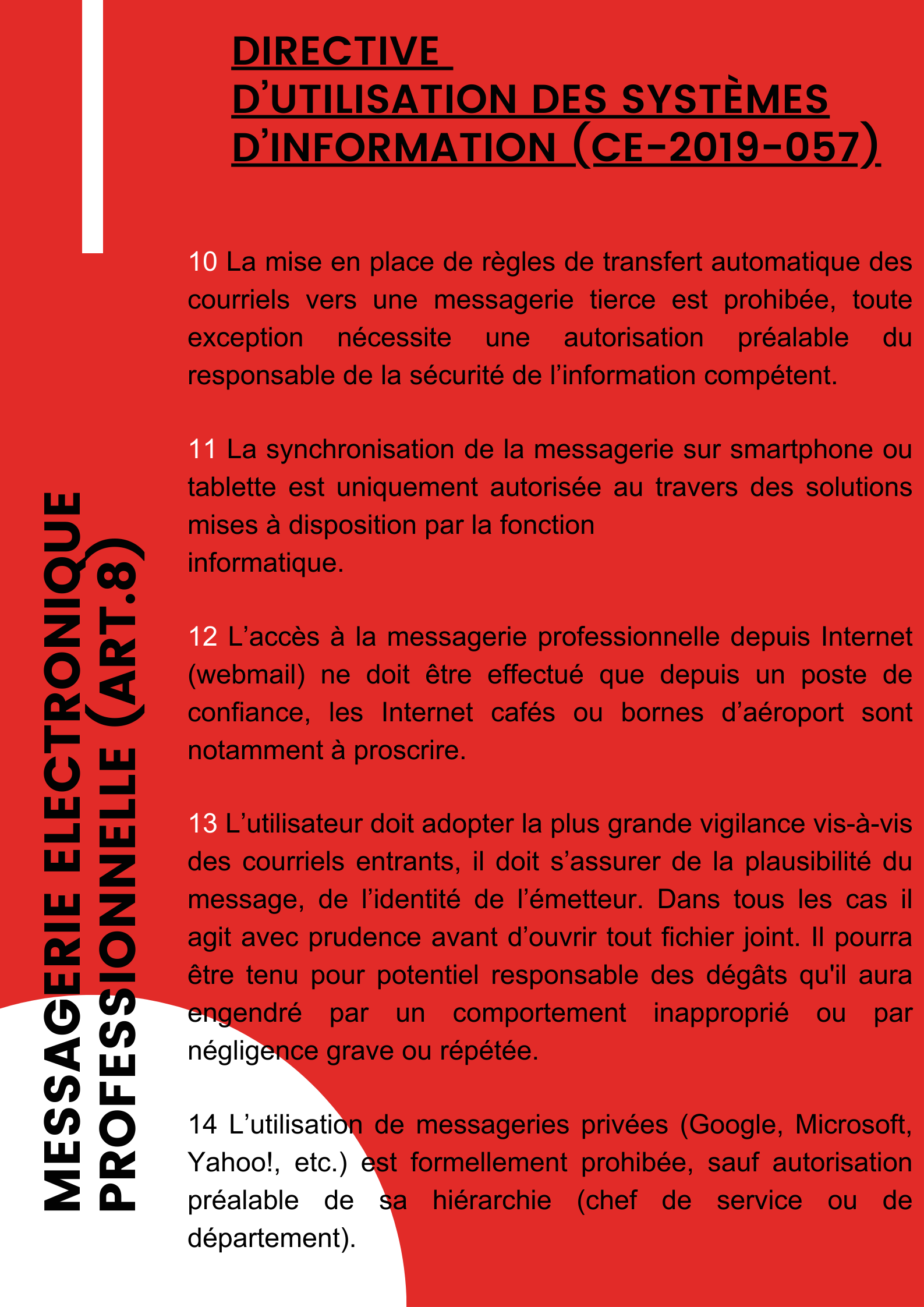 | « L’usage de notre messagerie électronique professionnelle est soumis à des règles. Elles sont réunies sous l’article 8 de la Directive d’utilisation des systèmes d’information du 1er novembre 2021. » | ||