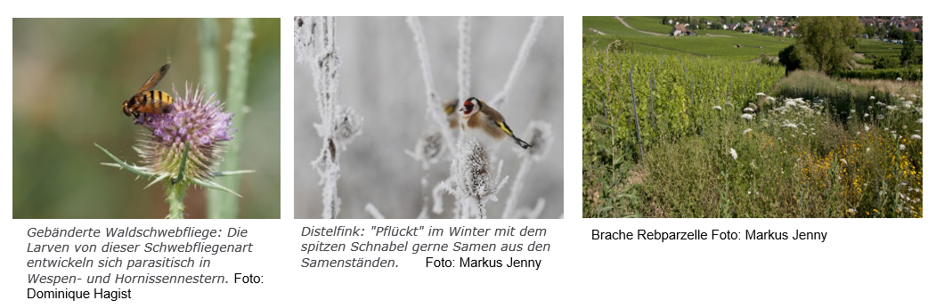 Buntbrachen bieten Nektar sammelnden Insekten vom Frühjahr bis zum Herbst konstante Nahrung. Dadurch werden die natürliche Schädlingsregulierung sowie die Bestäubung von Kultur- und Wildpflanzen gefördert. Die Flächen dienen auch als Überwinterungsplätze für zahlreiche Insekten und Kleintiere und bieten ein reichhaltiges Angebot an Samen für überwinternde Vögel. Darüber hinaus tragen sie zum Erosionsschutz bei und bilden eine Pufferzone, um die Abdrift von Pflanzenschutzmitteln abzumildern. Aufgrund ihrer vielfältigen ökologischen Vorteile sind Buntbrachen die wertvollsten Flächen zur Förderung der Biodiversität (www.agrinatur.ch)