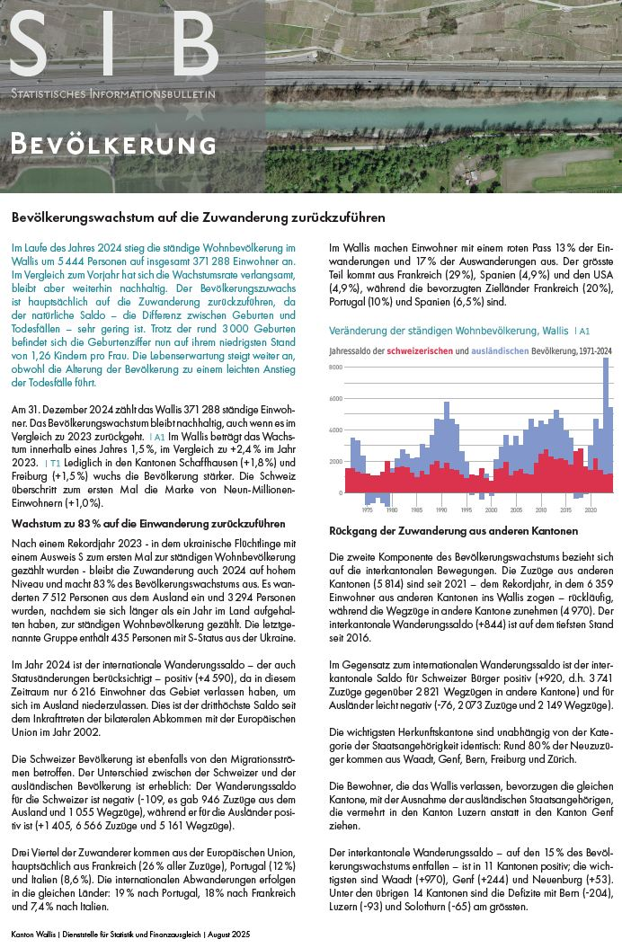 Mit dem Ziel, die Themen, die die statistischen Mitteilungen des Kantons ausmachen, hervorzuheben, verabschiedet die Dienststelle für Statistik und Finanzausgleich eine neue Publikation "Statistisches Informationsbulletin" (SIB). Die SIB ergänzt die Palette der Veröffentlichungen des Dienstes und ermöglicht vertiefte statistische Analysen zu bestimmten Themen, die über die jährlichen oder mehrjährigen Veröffentlichungen hinausgehen.
