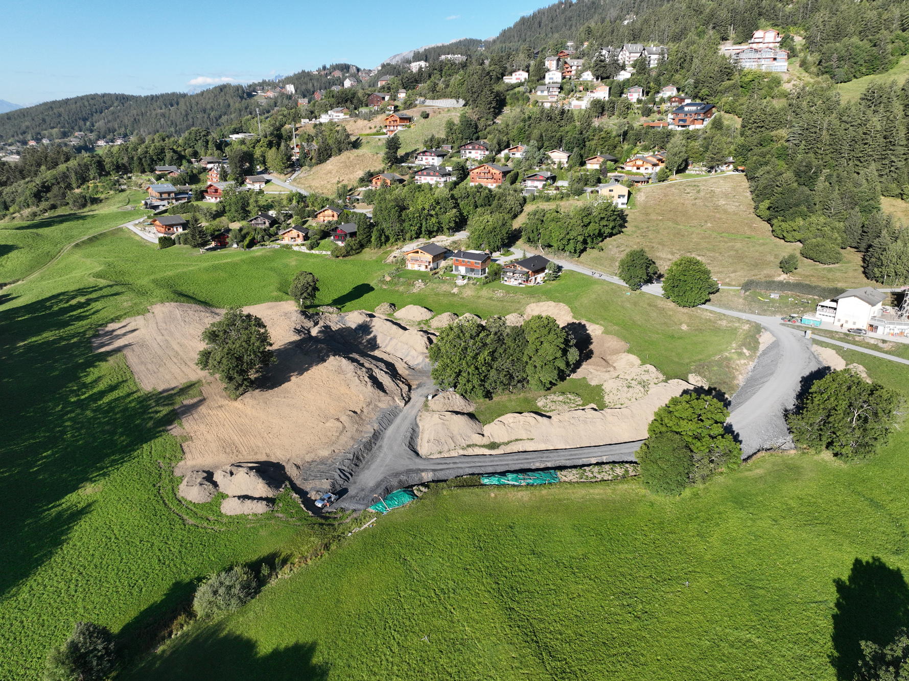 Pour gommer les aspérités du terrain, des matériaux d’excavation ont été utilisés. Au total, 12'500 mètres cube de remblais ont été acheminés sur le site. Ces terres proviennent d’un chantier de construction situé sur la station de Crans-Montana, à seulement deux kilomètres de ce domaine agricole.