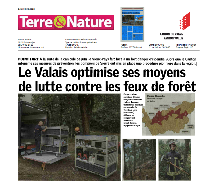 Le Valais optimise ses moyens de lutte conter les feux de forêt - Terre&nature, le 30.06.2022.